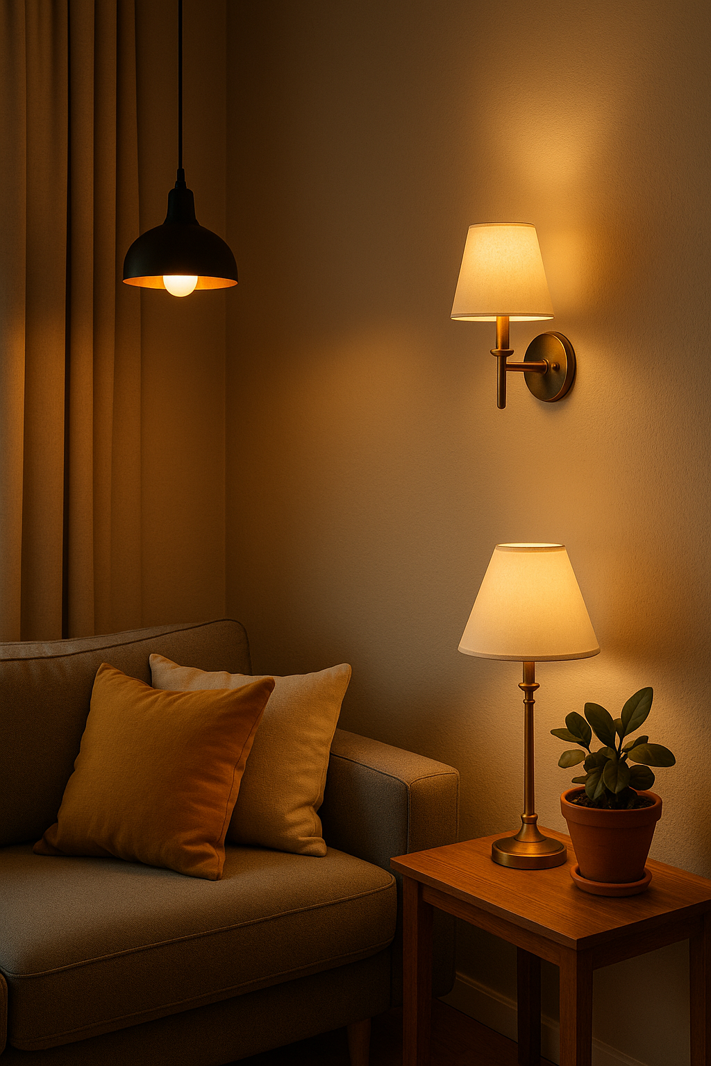 Good lighting doesn’t just illuminate a space — it defines it.Try replacing harsh white bulbs with warm LEDs, or install pendant lamps and wall sconces for cozy corners.