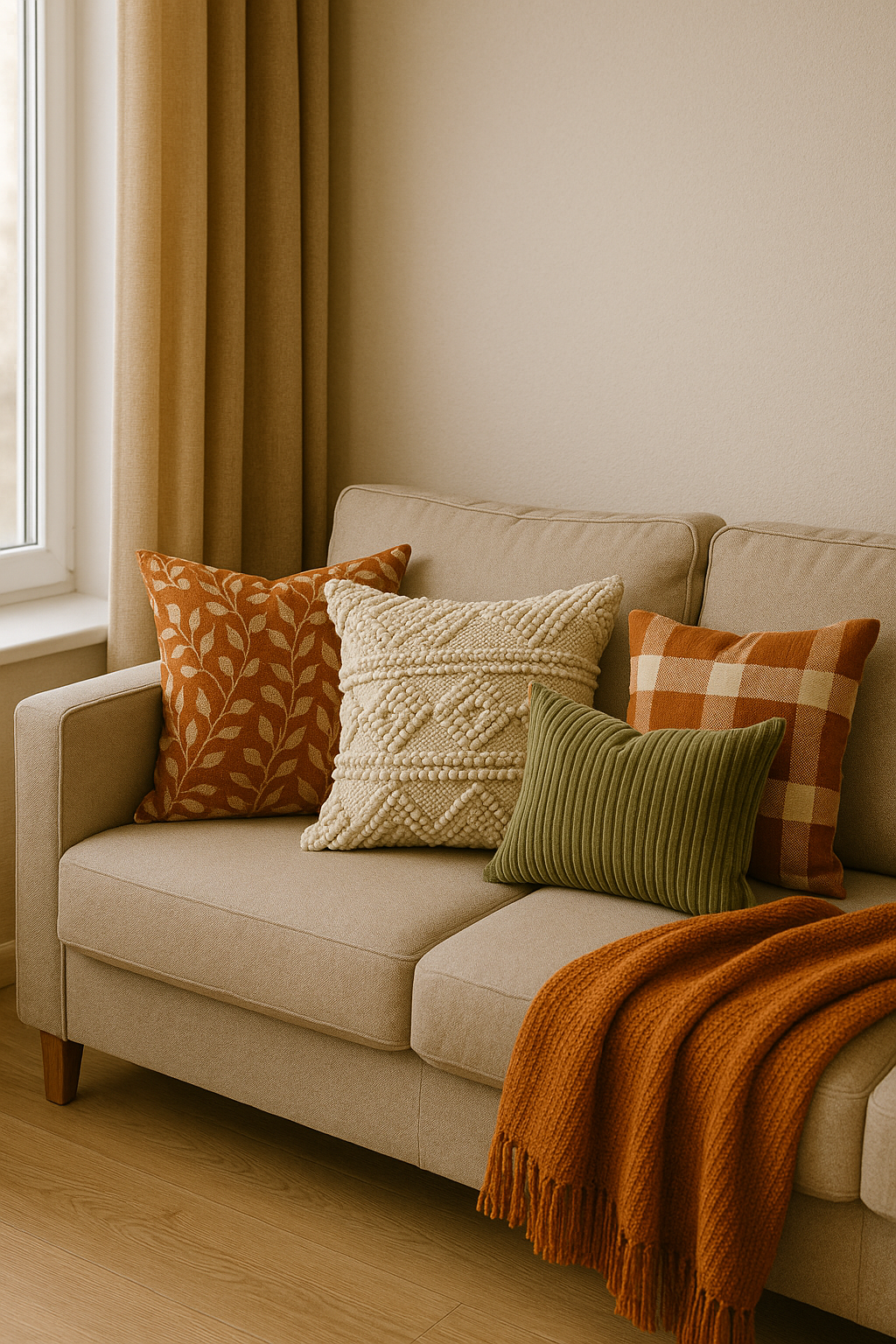 Cushion covers, throws, and curtains can completely redefine a room’s color palette.Experiment with patterns, textures, and fabrics — even switching from cotton to velvet can make a room feel luxe.