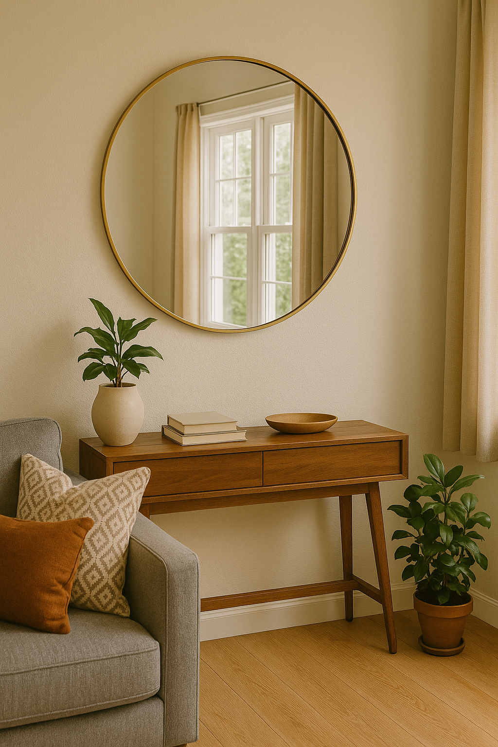 Strategically placed mirrors can make small rooms look twice as big.Try hanging one opposite a window to reflect natural light or in a narrow hallway to create depth.